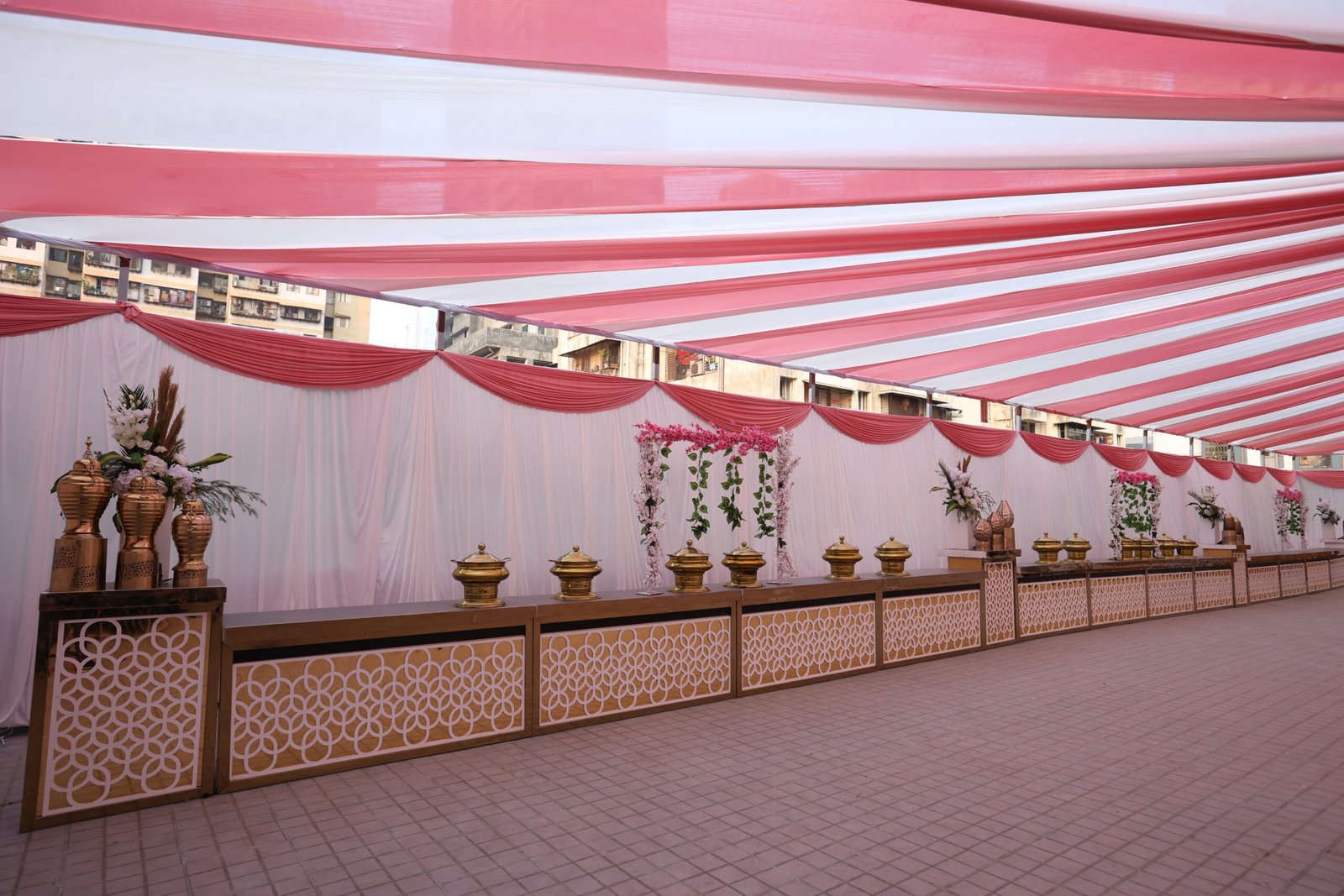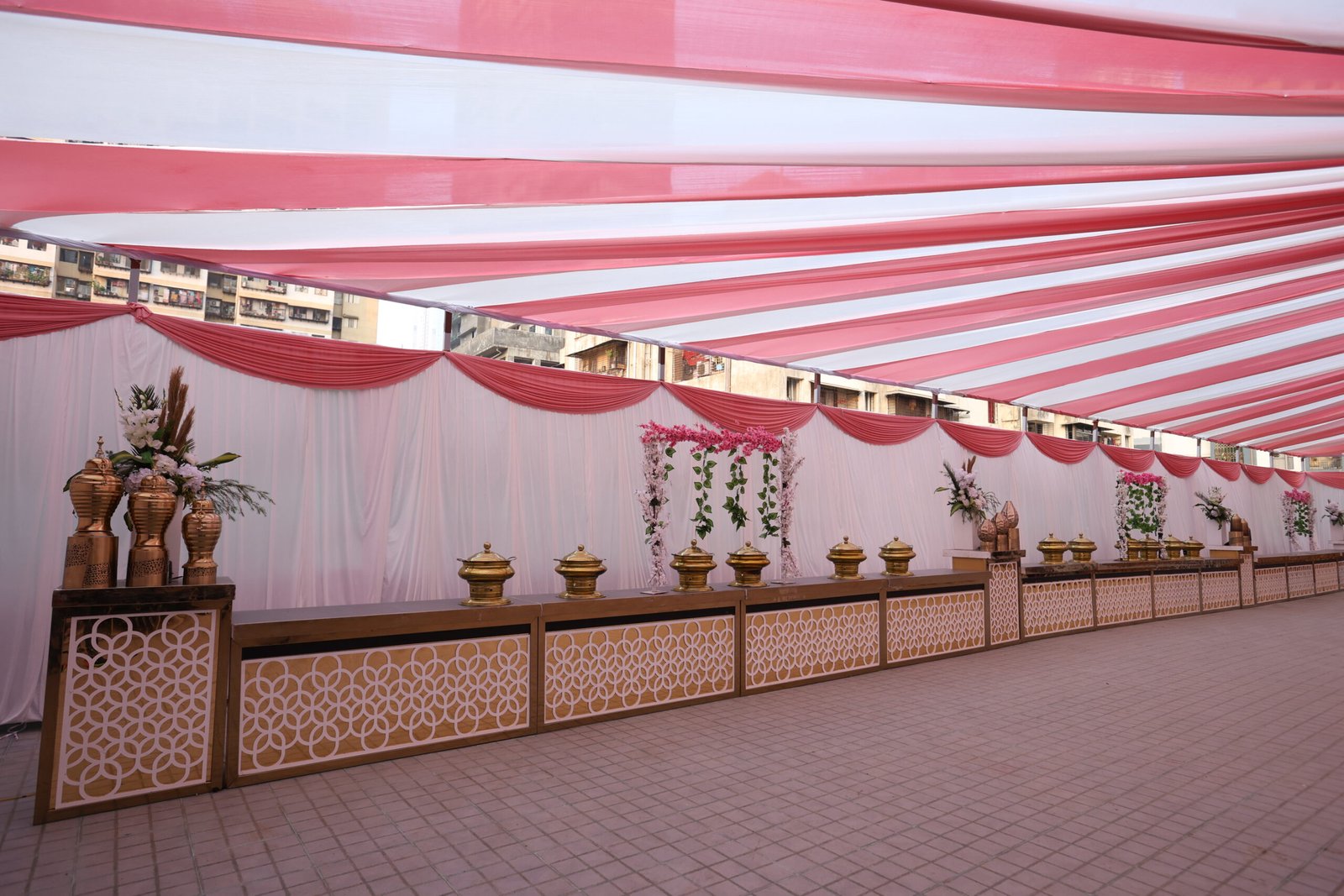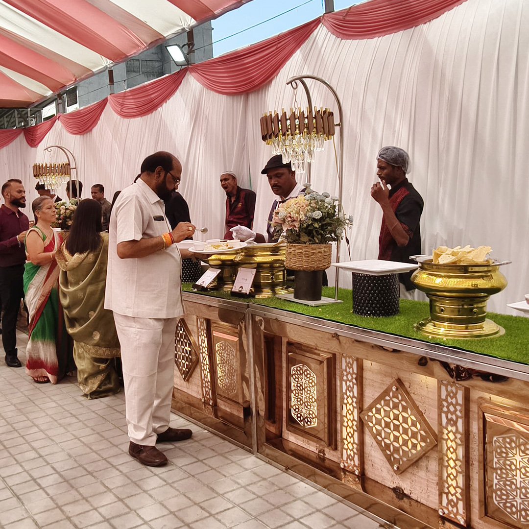 A banquet hall food counter serves guests through self-service or staffed stations. Options include buffets, live cooking, desserts, beverages, salads, main courses, and international cuisine. Key factors are hygiene, theme, food temperature, and guest flow. Staffing ensures smooth service, enhancing the dining experience at events.